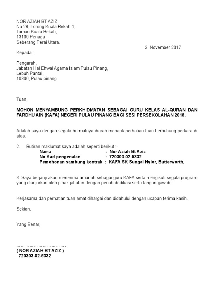 Contoh Surat Lanjutan Kontrak Perkhidmatan Surat Kontrak Untuk Makluman Tuan Tempoh Perkhidmatan Kontrak Saya Akan Berakhir Pada 17 Strickland Greeirds