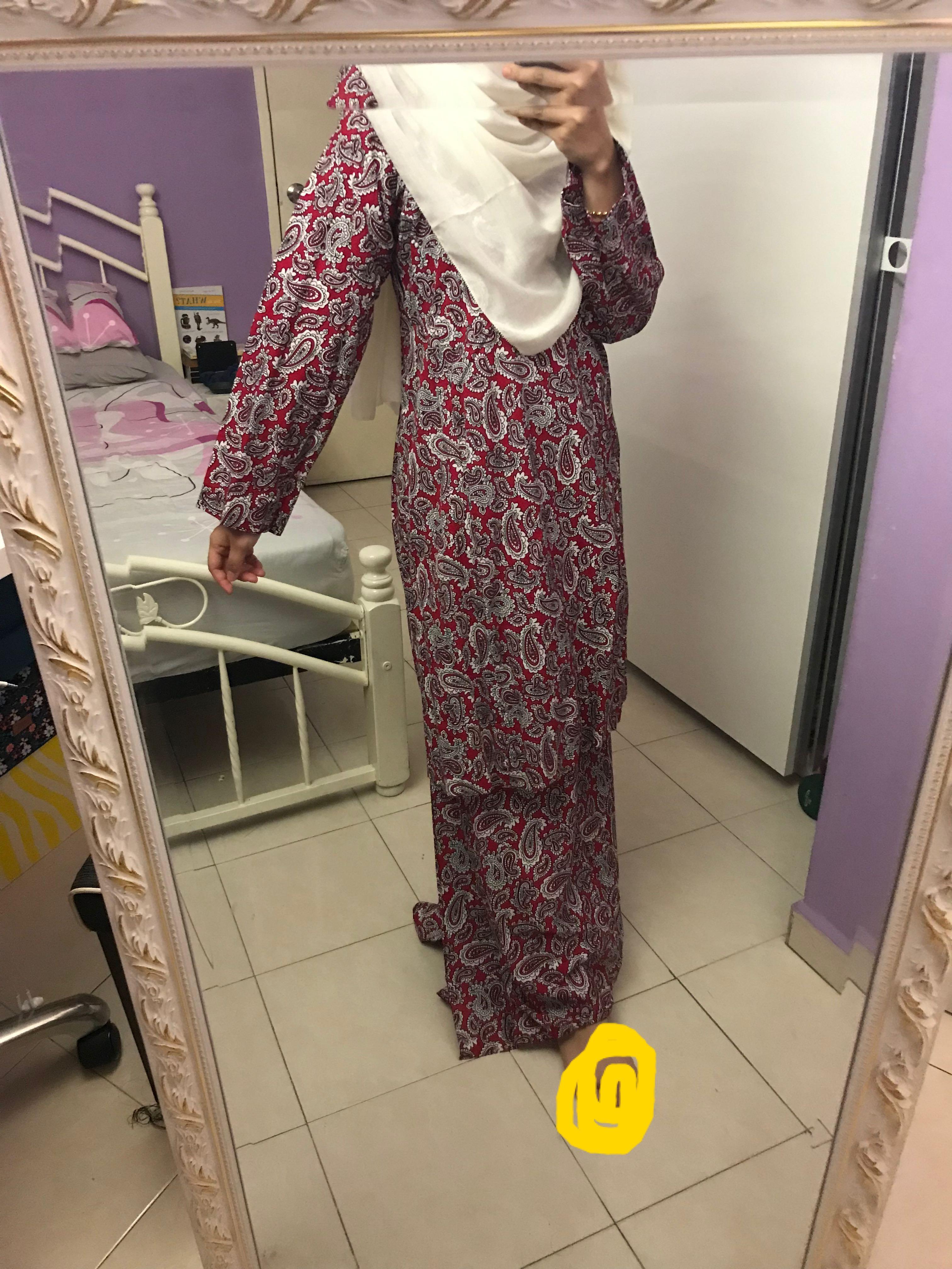 Cotton Baju Kurung Pahang In Red Size S Women S Fashion Muslimah Fashion Baju Kurung Sets On Carousell